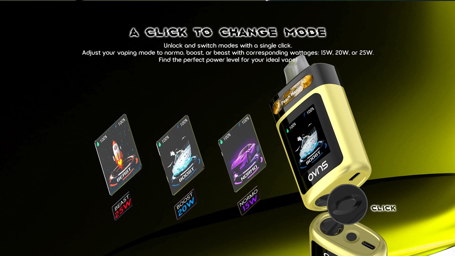 3 wattage levels adjustable: Normo 15w/ Boost 20w/ Beast 25w
