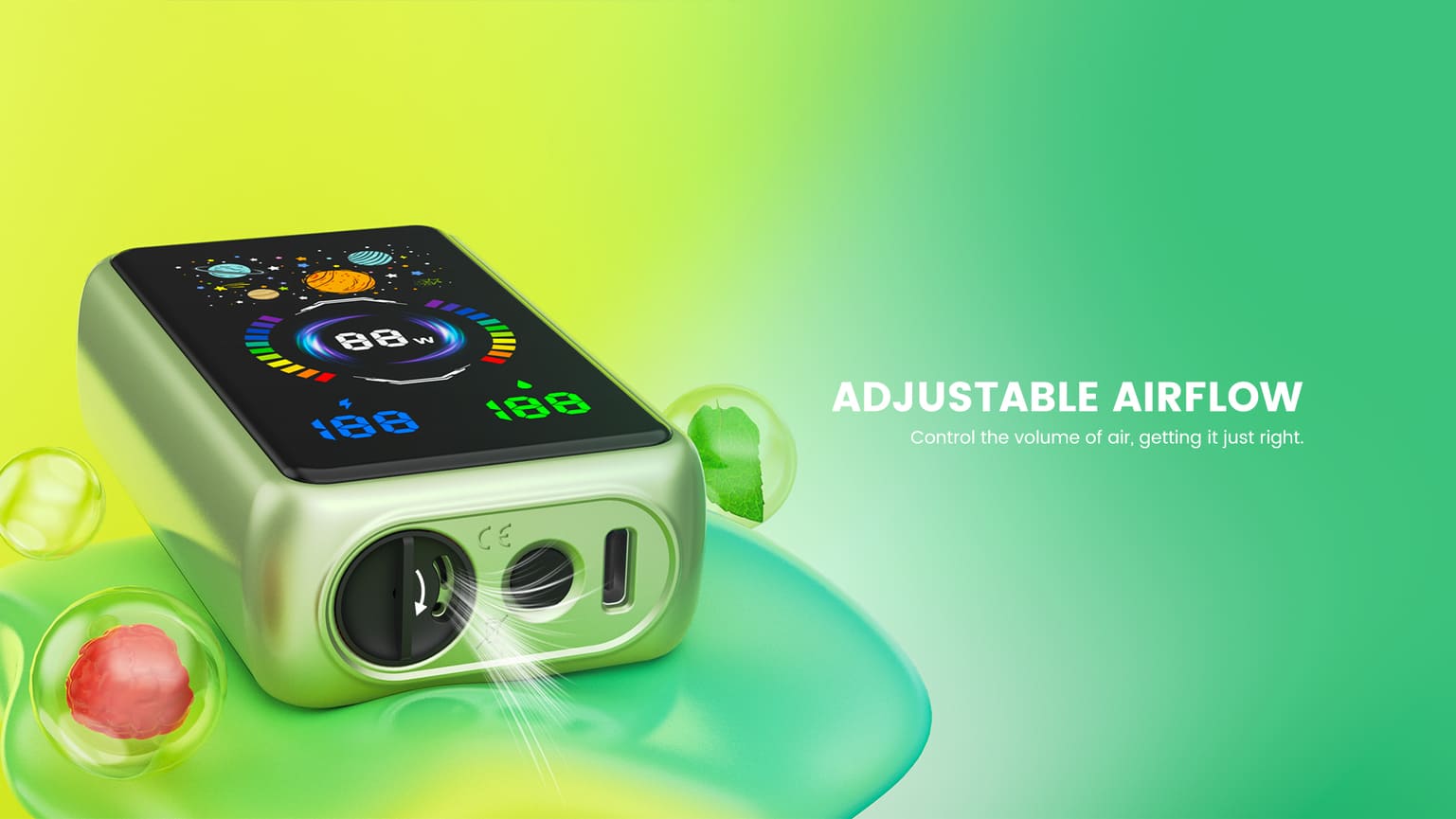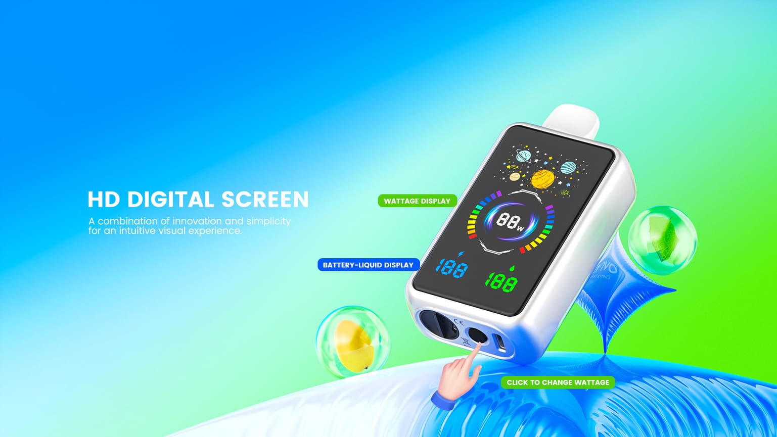 Full HD Screen (battery-liquid-wattage indicator)