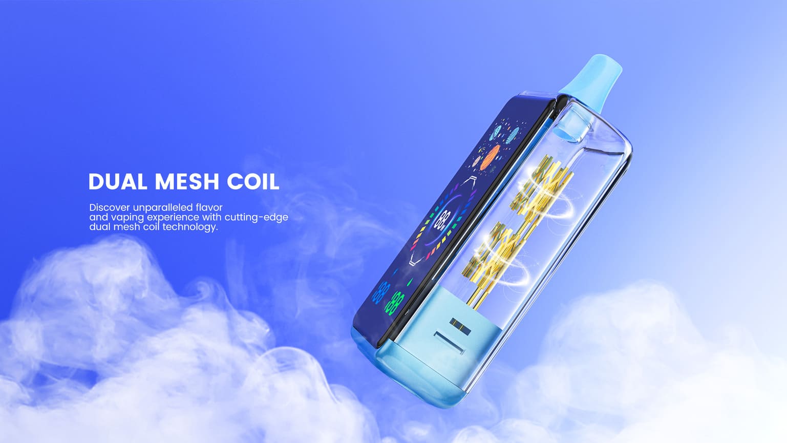 Monitor settings and usage clearly on the vibrant full-color HD screen. Equipped with a high-performance Dual Mesh Coil for rich flavor and dense clouds, it's powered by a robust 850mAh rechargeable battery with convenient Type-C charging.