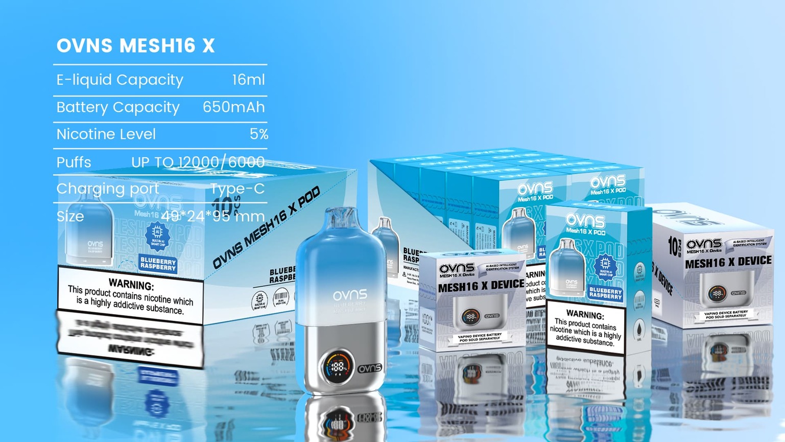 Unlock adaptive vaping with the OVNS Mesh16 X – the AI-powered pod system with an unprecedented 16mL e-liquid reservoir. Choose between two performance modes: TURBO (21W, 6K intense puffs) for dense clouds or NORMAL (10W, 12K extended puffs) for all-day smoothness. Its smart AI chip auto-calibrates output for consistent flavor delivery via the dual mesh coil. Monitor juice and battery life effortlessly on the digital screen. Pre-filled with 5.0% nicotine salt e-liquid, this 650mAh rechargeable kit (Type-C) merges massive capacity with intelligent control. Ideal for vapers seeking customization without refills: maximize power or longevity in one compact, tech-driven device.