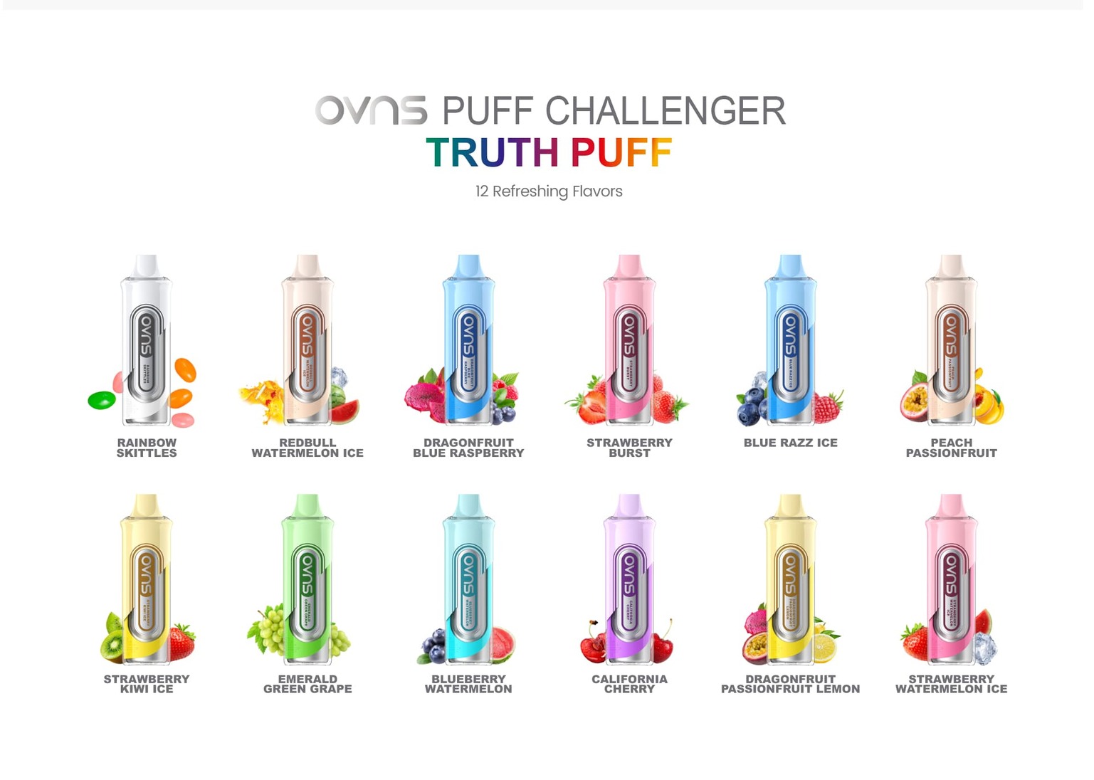 Take control of your vaping experience with the OVNS Puff Challenger, a standout disposable vape with puff counter technology. Featuring a unique 3D screen display, it offers real-time tracking of your puffs—empowering you to monitor usage and manage nicotine intake effortlessly, as well as battery and liquid levels. Encased in a sleek double color shell, this device combines durability with modern aesthetics. Dual mesh coil ensures consistent, rich flavor and dense vapor production from start to finish.