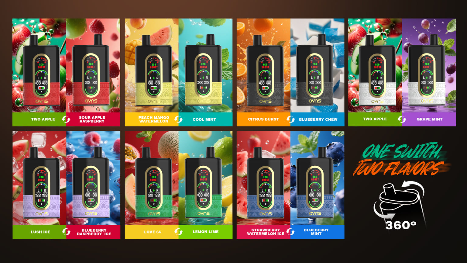 Unlock true flavor freedom with the OVNS Hookahbar Switch – a dual-flavor disposable vape featuring adjustable flavor switching between two 15mL reservoirs (30mL total). The dual mesh coils ensure maximum flavor fidelity in each chamber, while the OLED interface lets you toggle tastes and fine-tune airflow resistance instantly.