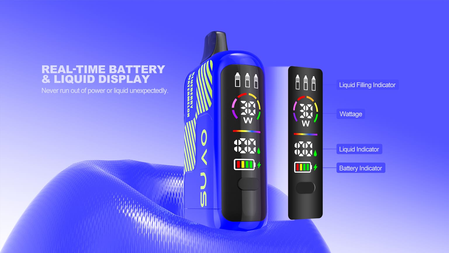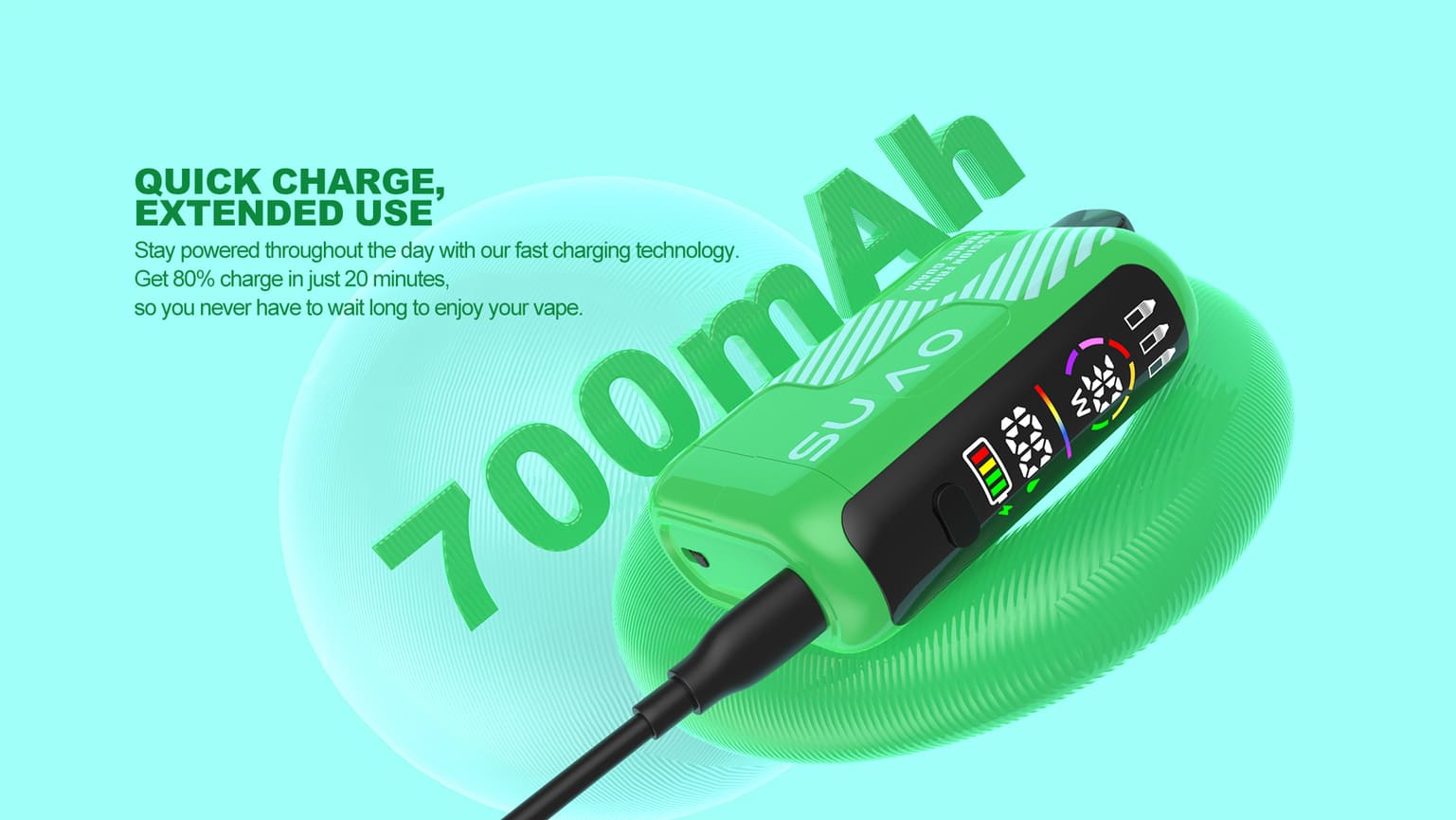 Elevate your disposable vape experience with the technologically advanced OVNS MESH 16D. Featuring cutting-edge Dual Mesh Coils, it delivers unparalleled flavor clarity and dense vapor by efficiently saturating and heating your 14mL of 5% nicotine salt e-liquid. Stay perfectly informed with the bright HD screen, displaying essential details like battery status and remaining e-juice, ensuring you're never caught off guard. Built for extended sessions, it offers up to 12000 puffs supported by a reliable 650mAh rechargeable battery. Quickly recharge via the modern USB Type-C port for maximum convenience. Designed for adult smokers seeking performance and ease, the OVNS MESH 16D combines innovative coil technology, clear visibility, and long-lasting satisfaction in one sleek device